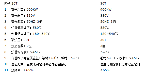 一、卷材退火爐部分技術(shù)參數(shù)舉例